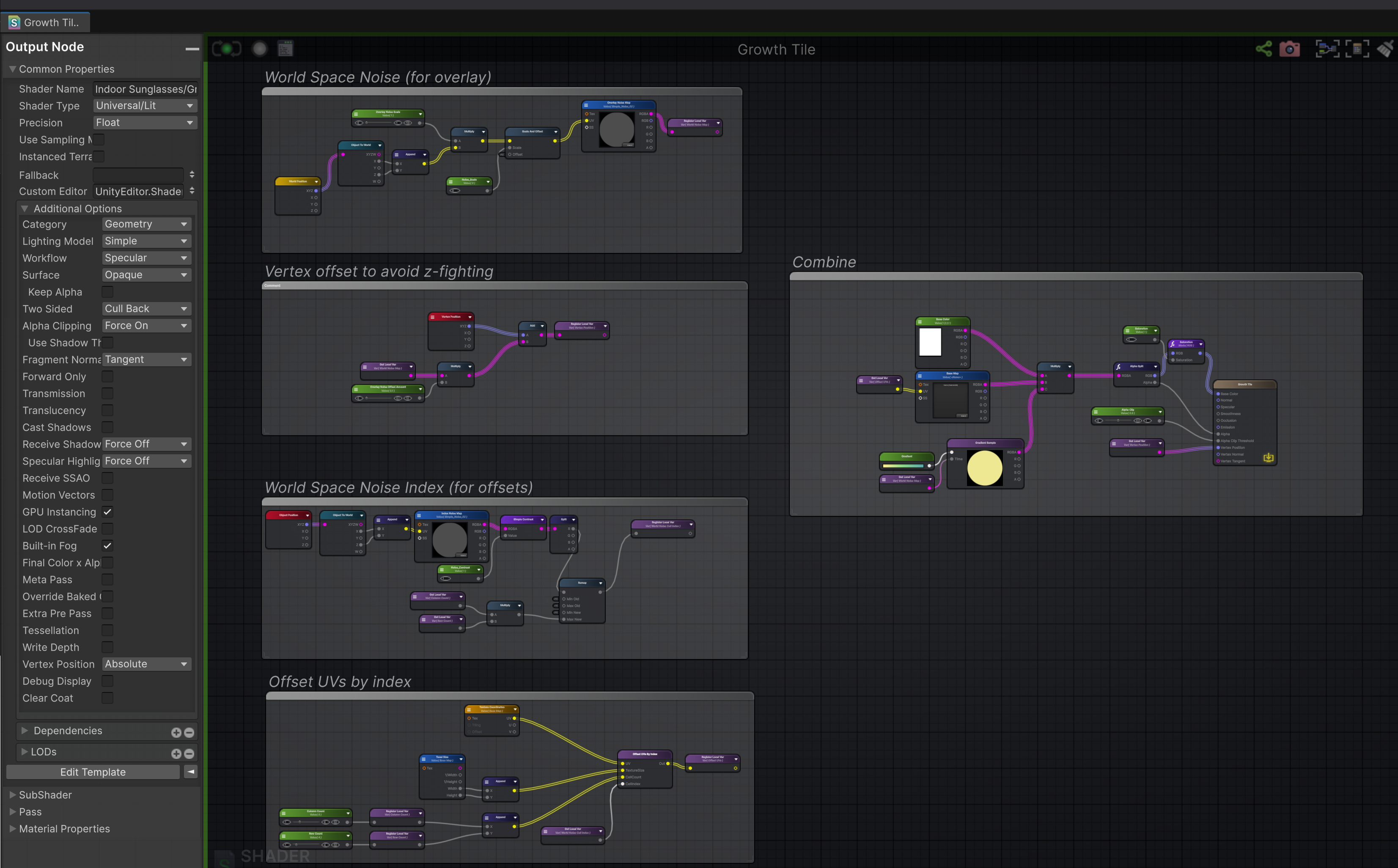 - Something derived from that same texture atlas optimization process is a shader I made along with Edd in Amplify shader to randomize the texture displayed by ground tiles, from a tiny 4-cell atlas, based on a noise texture.