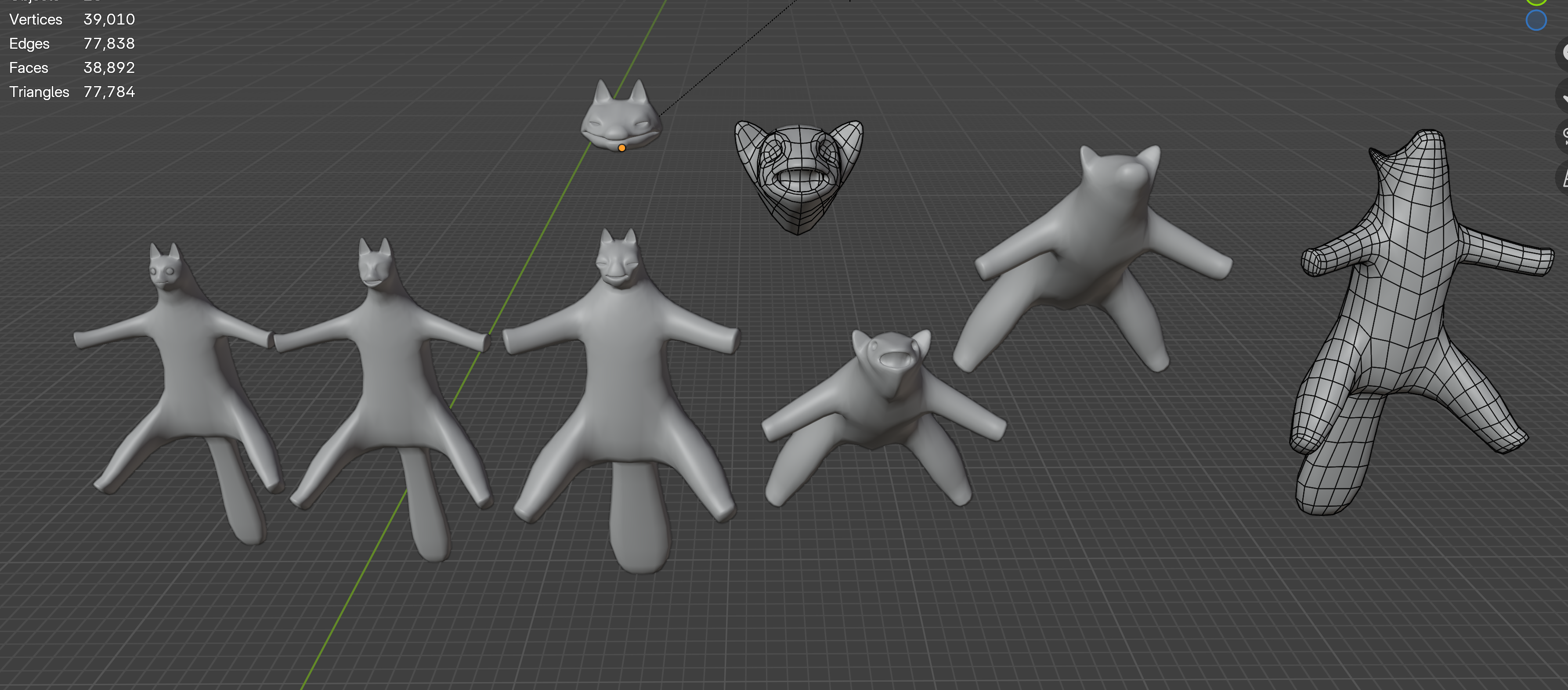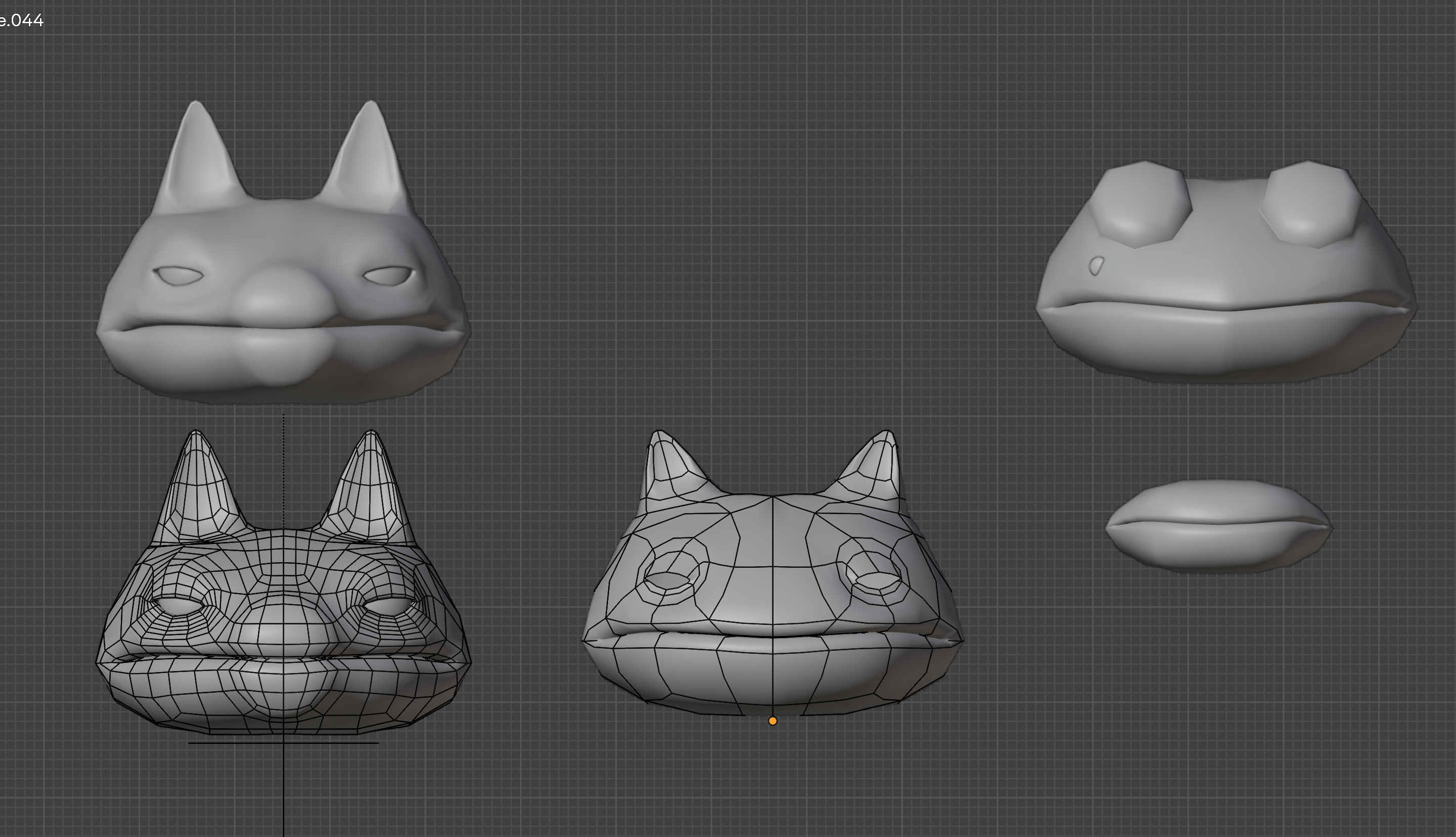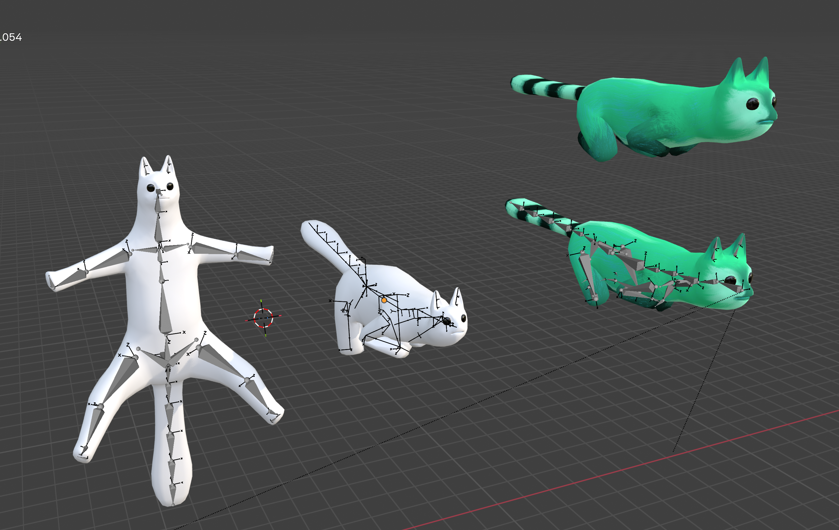 - The forest Godâ„¢ was an awful piece to make quickly, but turned out great. I was sore about doing assets in 2D, so having the chance of producing a main 3D asset was relieving. The model was a simple subdivided / mirrored cube, which meant I had very quickly topology issues with the face, which I merely covered up with googly eyes. Once that was done, textured painted it with Ucupaint, and made an armature with the idea of having it follow the head position (head propagates to the rest of the bones, therefore head bone is the main bone, and all other bone chains are directed outwards, not what you would normally do if you wanted to easily animate this creature). This worked nicely with wiggle bones, and translated quite well into Godot’s Springbones, and in Unity to Fimpossible creations TailAnimator component (configurable joints should also be able to give you this effect, or script)